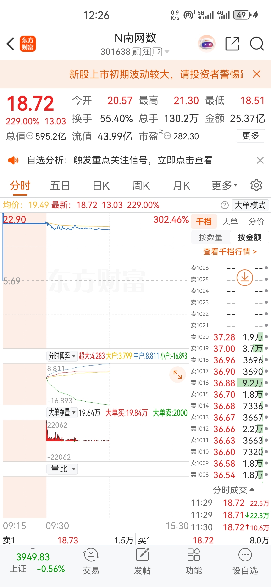 $N南网数(SZ301638)$ 没有挂999999卖的