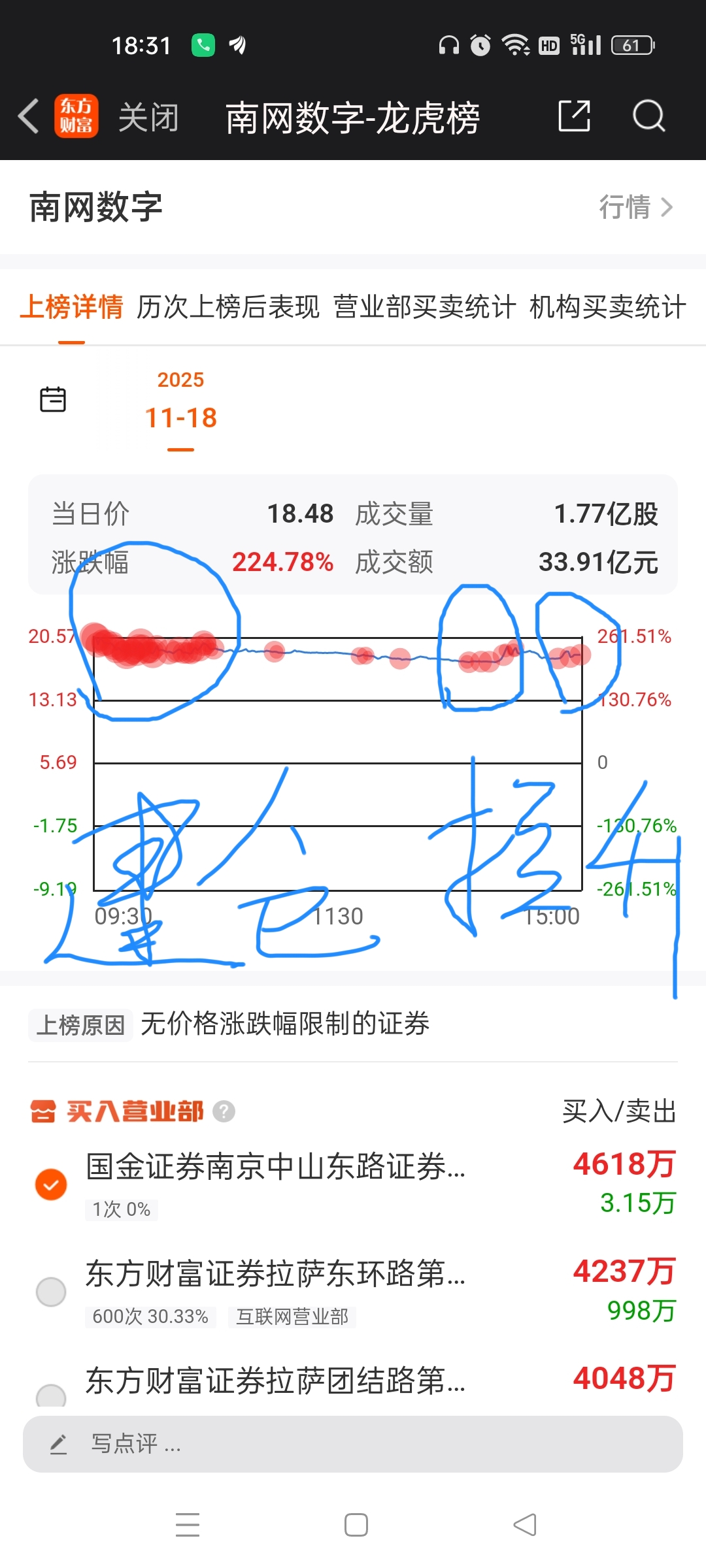 $N南网数(SZ301638)$ 这票有意思,今天买一还是想做一波的,早盘接货建仓,尾盘拉升护盘,如果没有榜一,跌得更狠,会单边跳水。明日配合榜一一起慢慢拉高,有题材,价格还不是太高,还可以玩玩,控制仓位就好