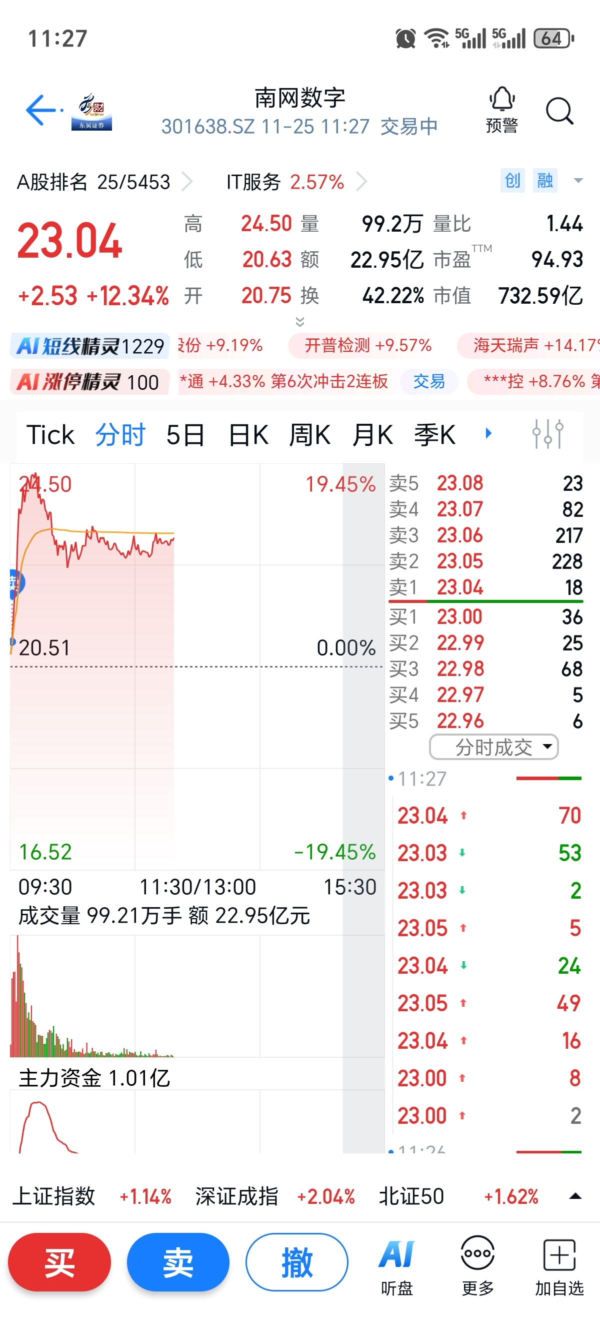 $南网数字(SZ301638)$ 大家坚定持有,还能涨,我下车了。你们继续发财