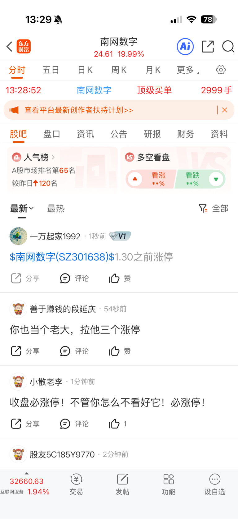 $南网数字(SZ301638)$ 上周五选的实达集团和易点天下,20厘米的当天舒服,周一开盘被洗出去了大涨,今天又冲高,早盘介入南网数字收获涨停。#炒股日记# #复盘记录#