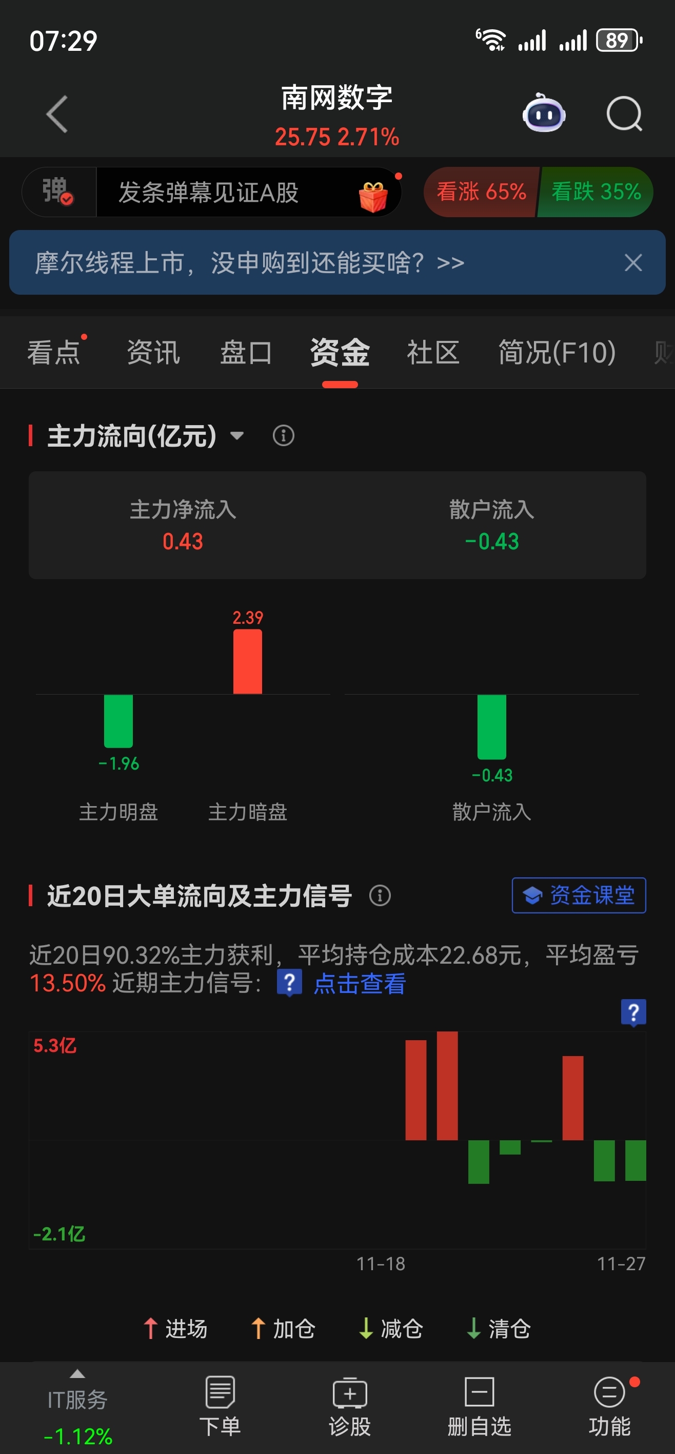 今天主力暗盘流入2.39亿