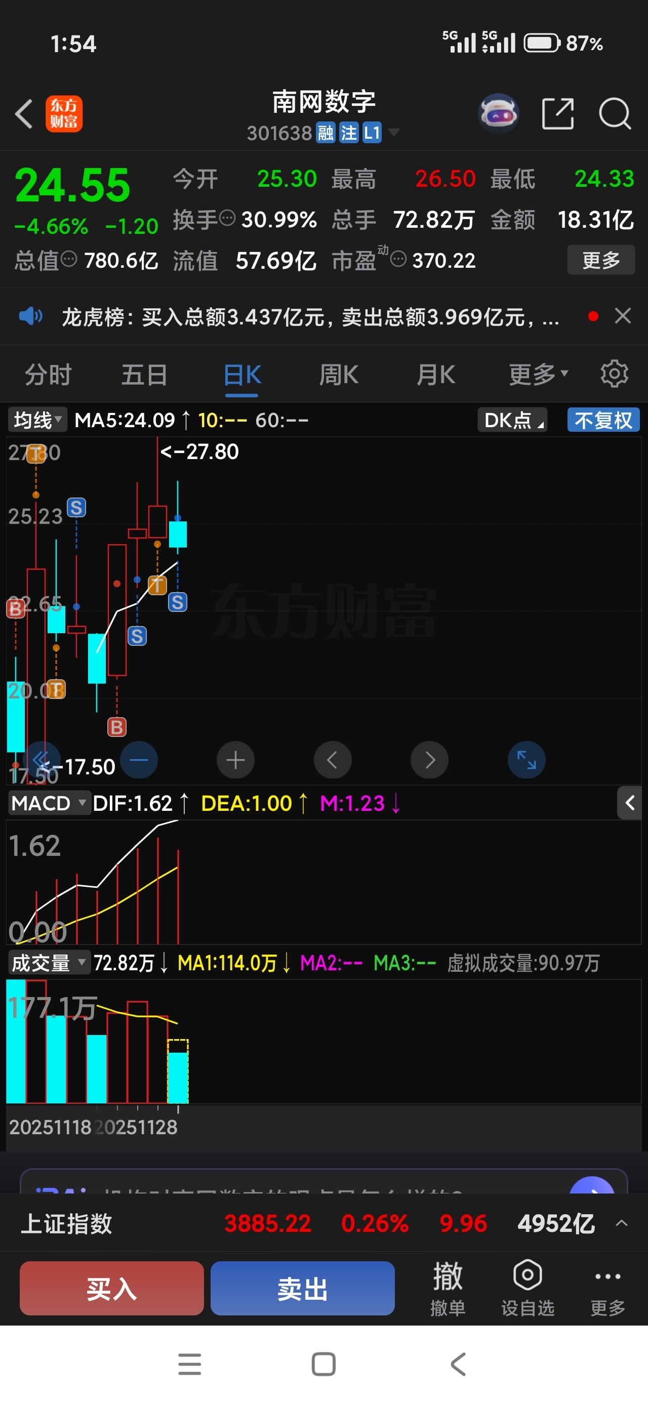 $南网数字(SZ301638)$ 早上清仓了,感谢主力,希望留下的发财