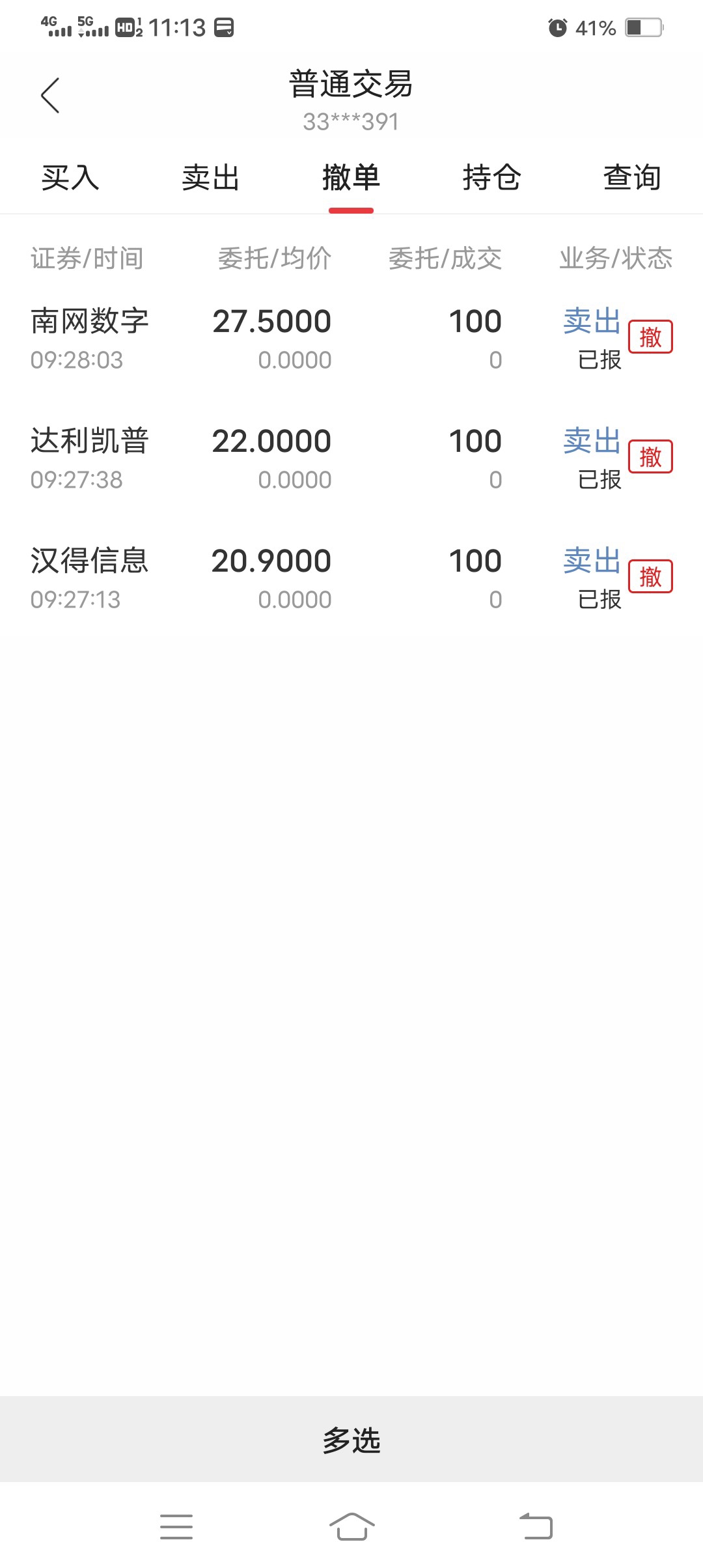 $南网数字(SZ301638)$ 今天的卖单委托能完成吗