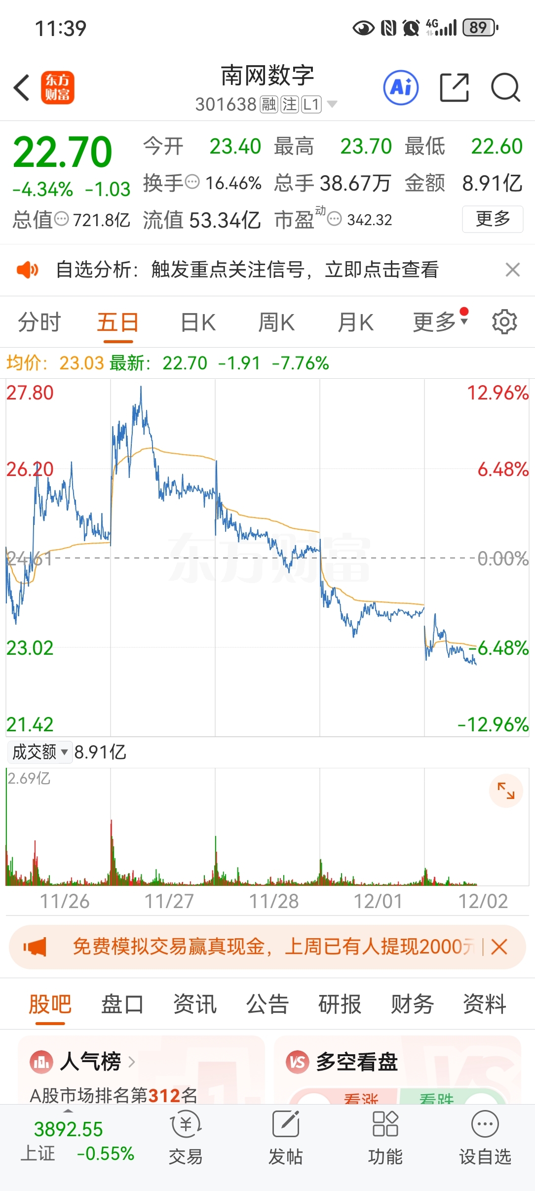$南网数字(SZ301638)$ 恰是一江春水向东流,越发资讯越跌,跌回18也就这周的事