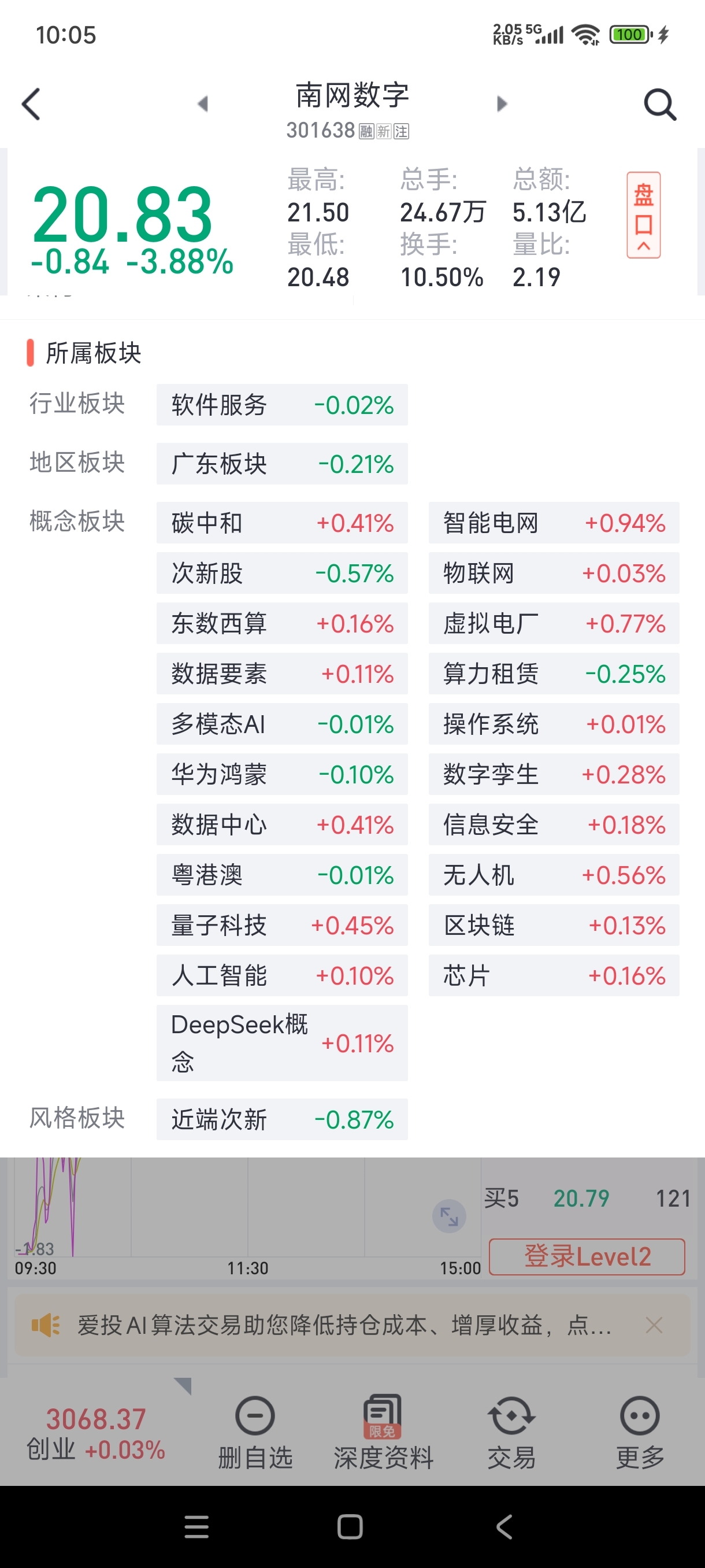 $南网数字(SZ301638)$ 今天跌过头了。买买买。