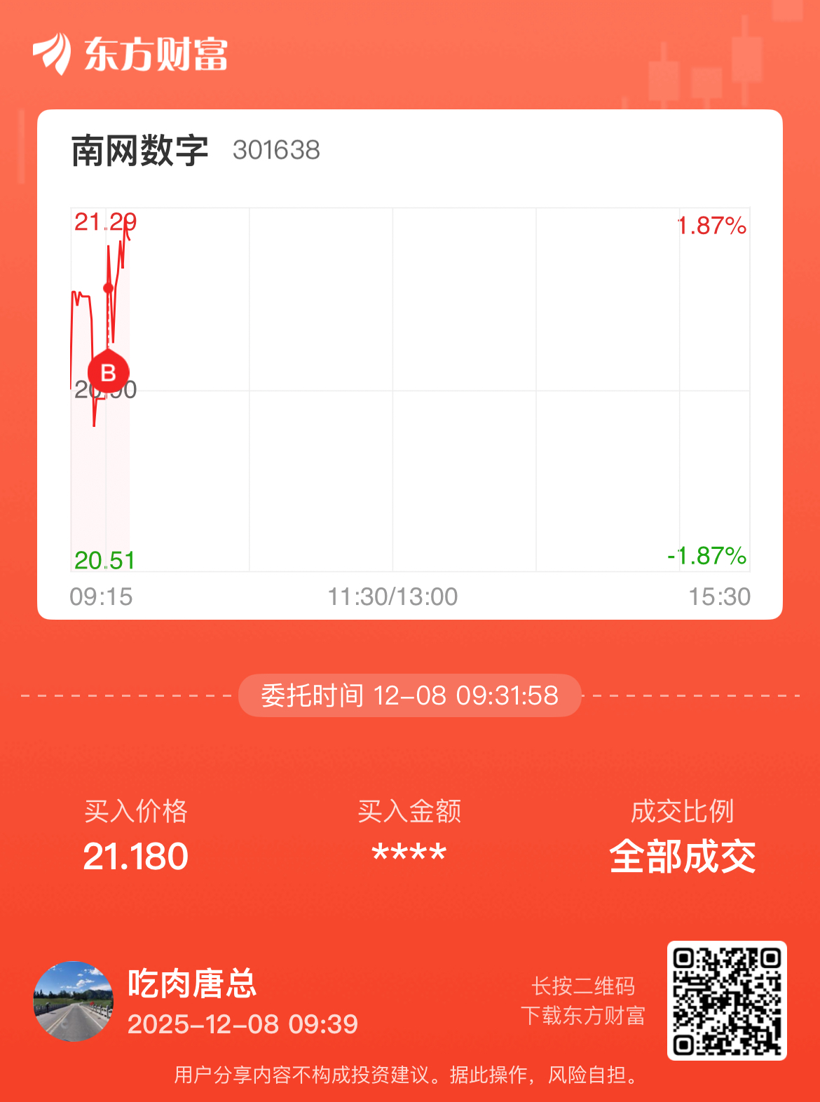 买入南网,华融再看看,目前被套,特发服务出来,这部分买入南网,最近有点乱,稳住