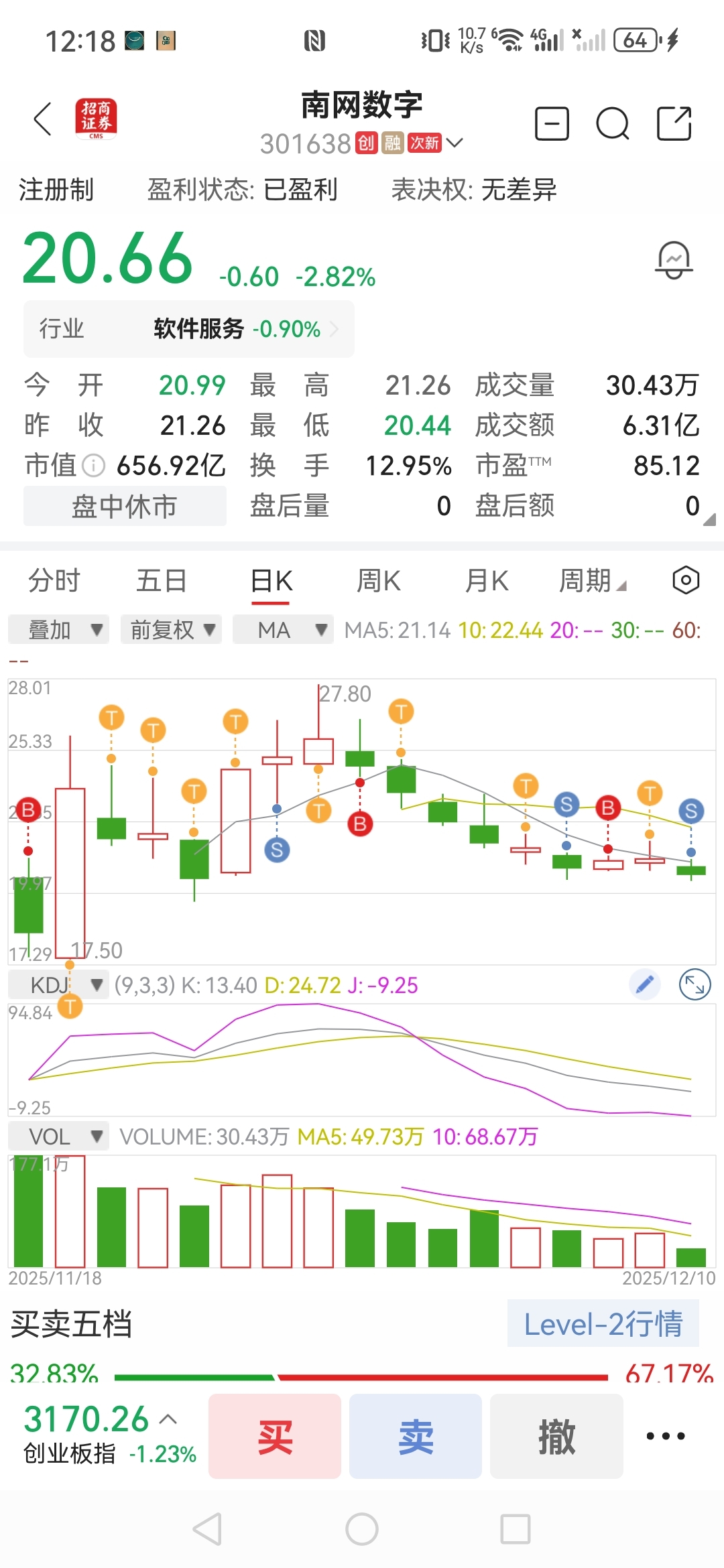 $南网数字(SZ301638)$ 南网数字从第一天低点18.8半仓,第二天低开满仓,当天吃40个点收益,没卖,一直拿,最后获利13个点出了,主要有新的标的。