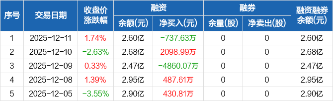 南网数字:融资净偿还737.63万元,融资余额2.6亿元(12-11)