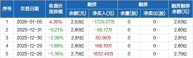 南网数字:融资净偿还1729.07万元,融资余额2.63亿元(01-05)