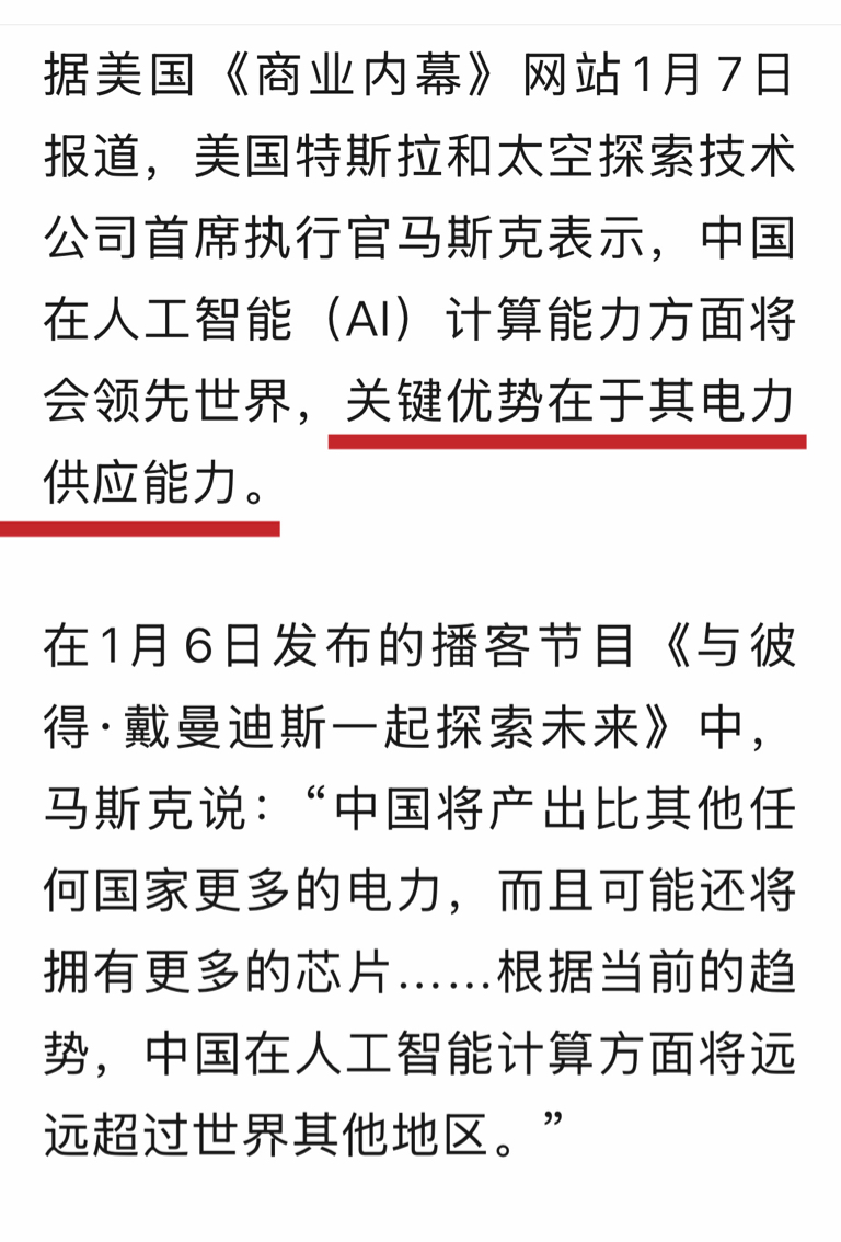 $南网数字(SZ301638)$ 1月7日环球时报的报道,马斯克的观点。