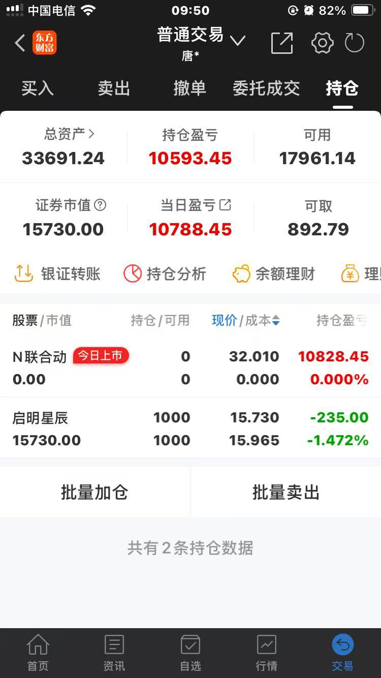 $C联合动(SZ301656)$ 炒了快二十年的,一直打新,从来没有中过。前十年用的光大证券,后十年用的东方财富,都没有中过。今年四月份,注销了光大和东财。又从新开了东财,这次居然就中了新股。资金大概在2到50万不等。身边的朋友,中过新股的人,大概有三分之一。我老婆比较特殊,中了三次,最高一签赚了8万。我自己这一签赚了一万。也算勉强了。
