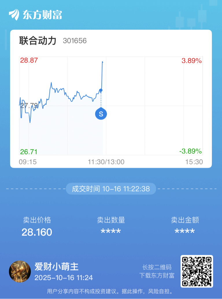 $联合动力(SZ301656)$ 这是个啥市场不走就是不拉挂个单买个菜回来就起飞咯差我这三瓜俩枣吗?每天就涨指数手里票就是不涨大盘一跌这就开始显摆她带头往下砸、敢去追个高的第二天不是低开就是开盘就砸还怎么玩呢