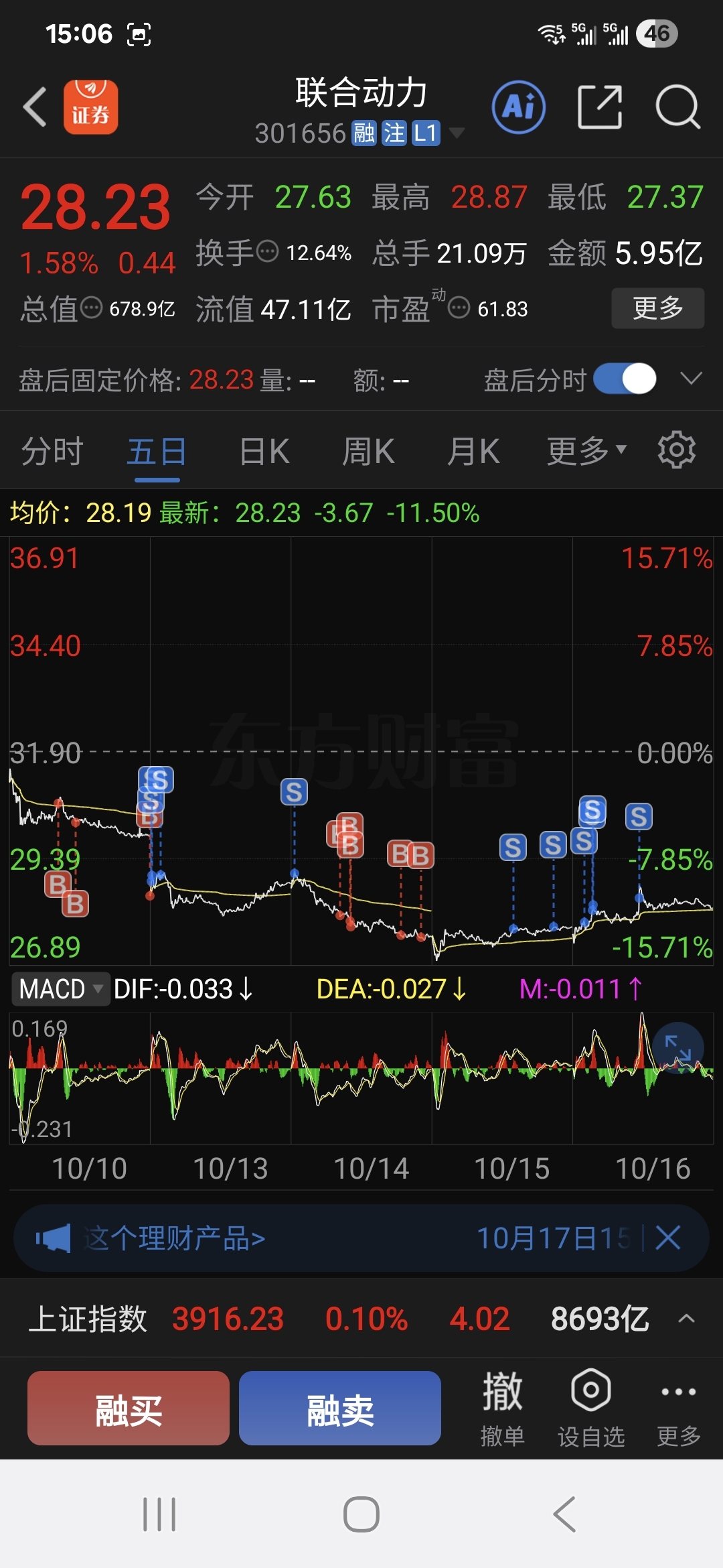 $联合动力(SZ301656)$ 正好5个交易日,这轮下跌今天五日线2847保本出来了,今天拉2887那一下就是老张成本价派发了,五日线继续下探,看到2530附近止跌反弹,好好把握一下,陈近南