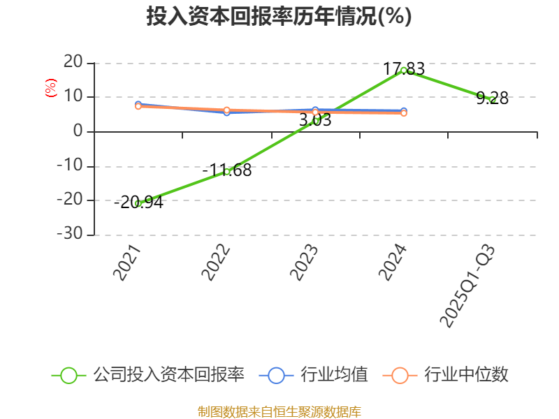 盈利能力方面, 2025年前三季度公司加权平均净资产收益率为15.01%。公司2025年前三季度投入资本回报率为9.28%,较上年同期下降16.81个百分点。
