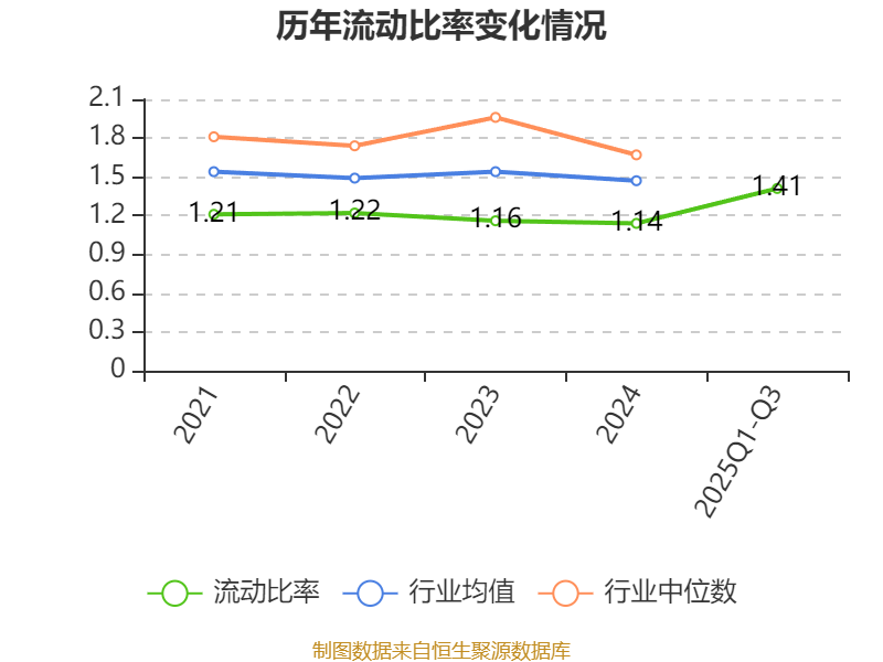 2025年前三季度,公司流动比率为1.41,速动比率为1.11。