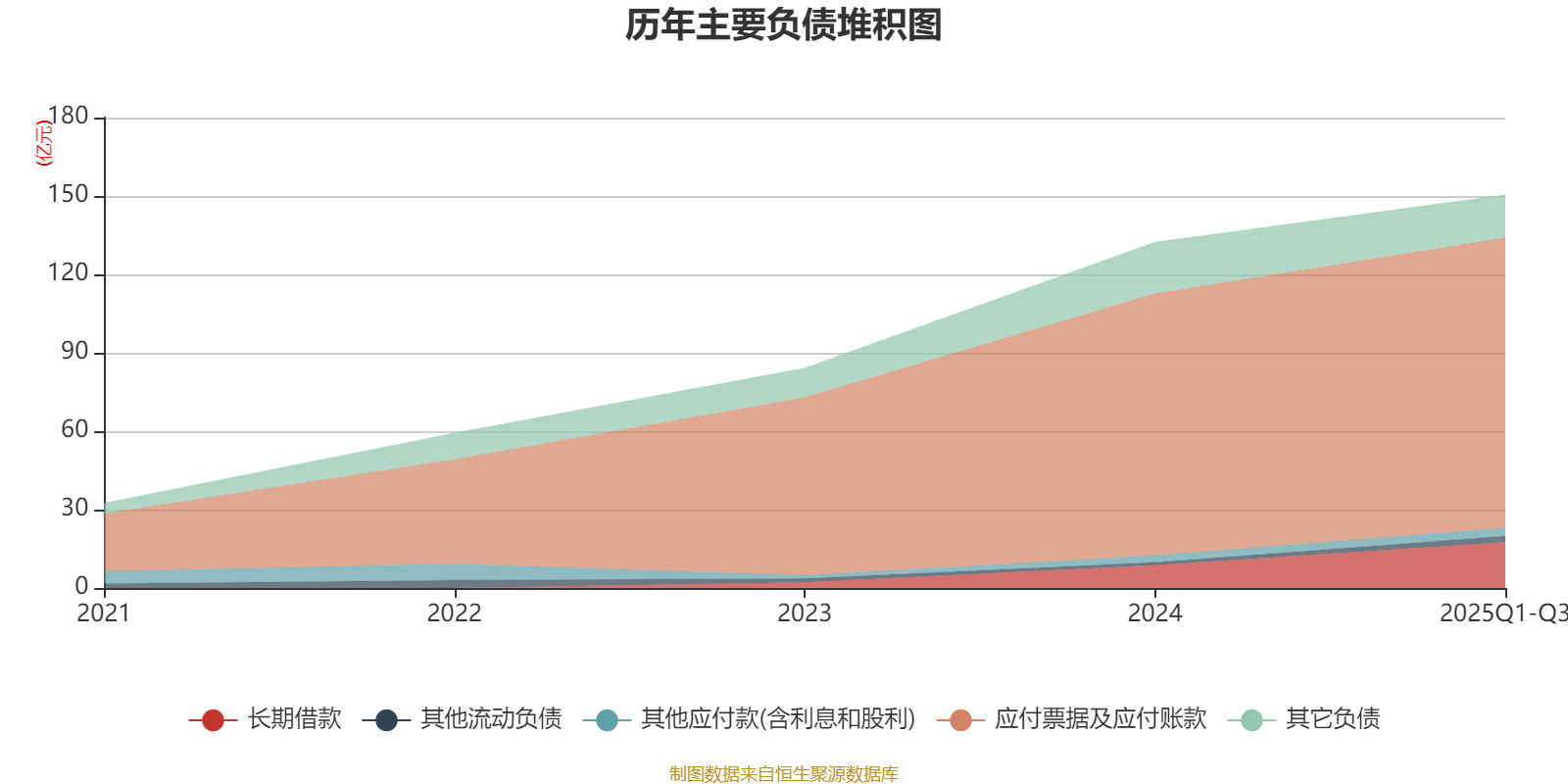 负债重大变化方面,截至2025年三季度末,公司应付票据及应付账款较上年末增加10.79%,占公司总资产比重下降9.75个百分点;长期借款较上年末增加100.59%,占公司总资产比重上升2.38个百分点;应付职工薪酬较上年末减少27.65%,占公司总资产比重下降1.27个百分点;合同负债较上年末减少69.95%,占公司总资产比重下降1.25个百分点。