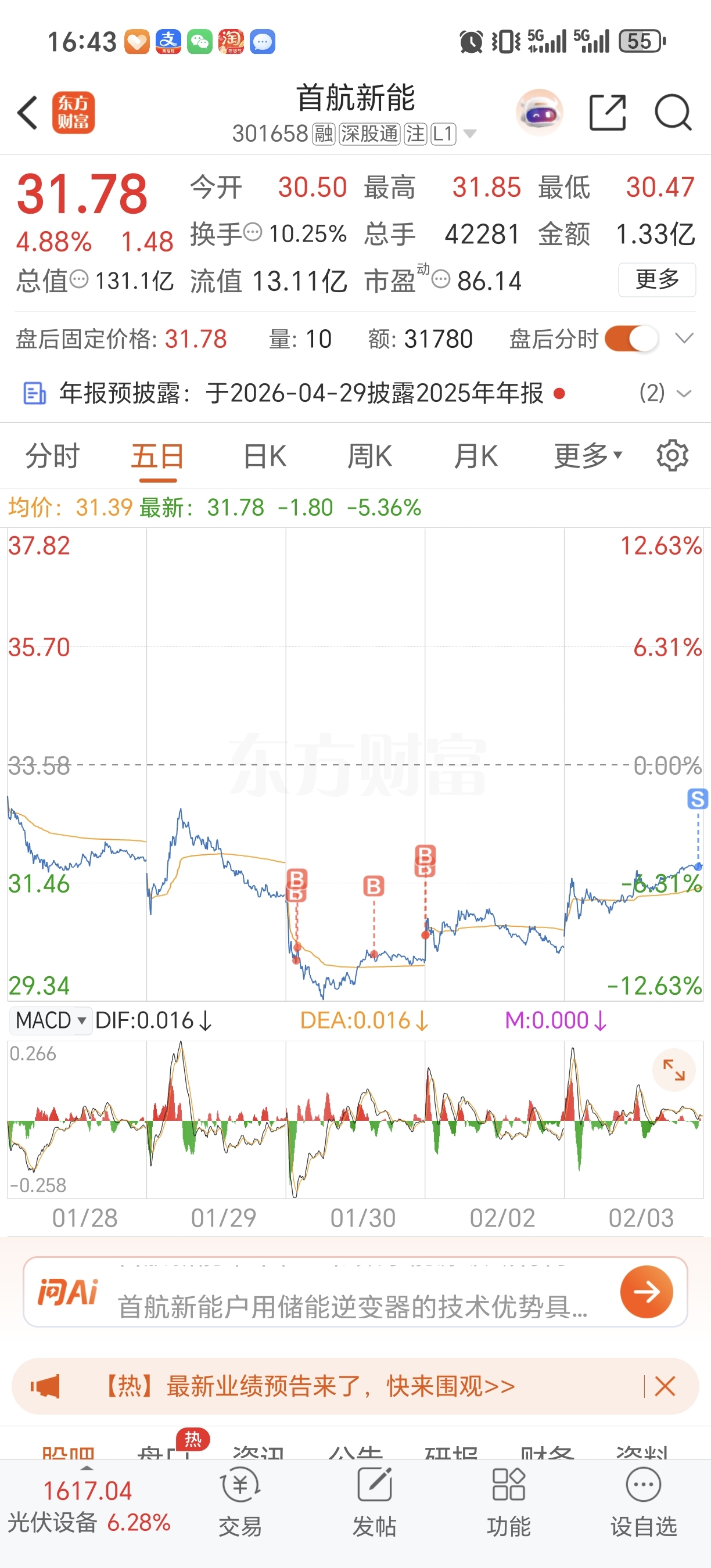 $首航新能(SZ301658)$ 减仓,用于交水电费
