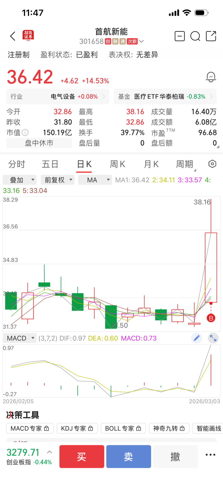 今日买的所有票其他全部涨停,都是强势股龙头,只有这个首航新能等着下午封住涨停板,