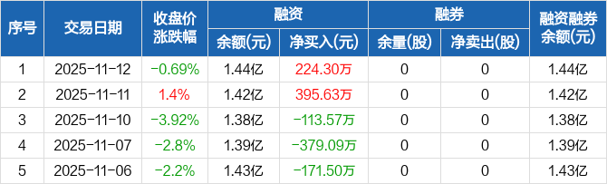 宏工科技:融资净买入224.3万元,融资余额1.44亿元(11-12)