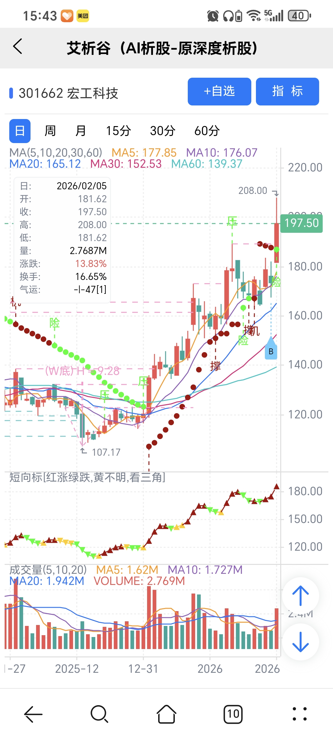 AI模型选股,量化指标识别关键点,简单技术分析确定买卖点,结合量化和人工综合运用,才能有优势。宏工科技