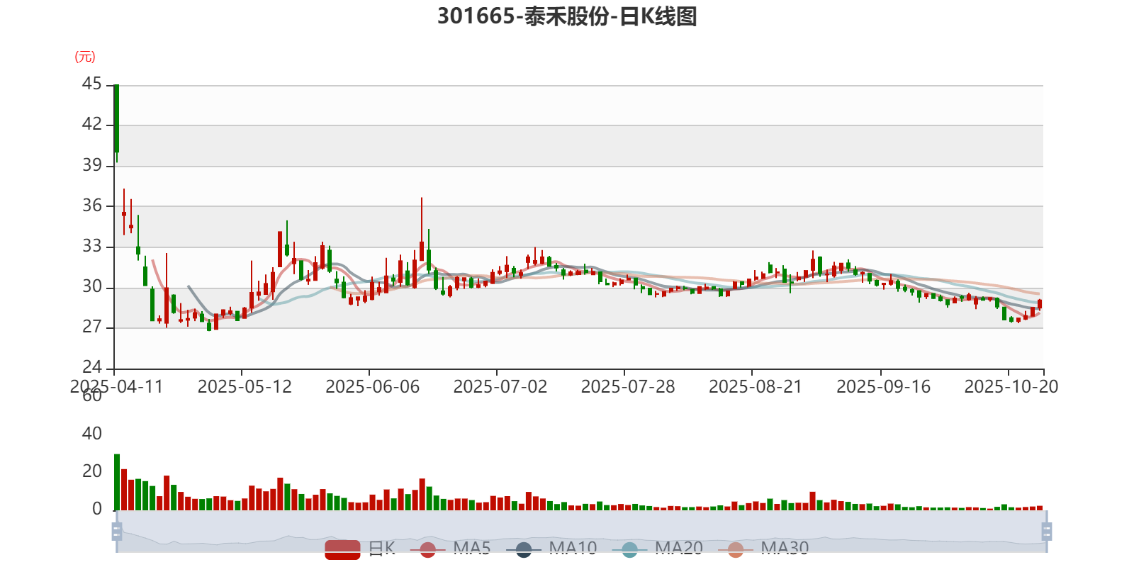以10月24日收盘价计算,泰禾股份目前市盈率(TTM)约为28倍,市净率(LF)约3.72倍,市销率(TTM)约2.56倍。