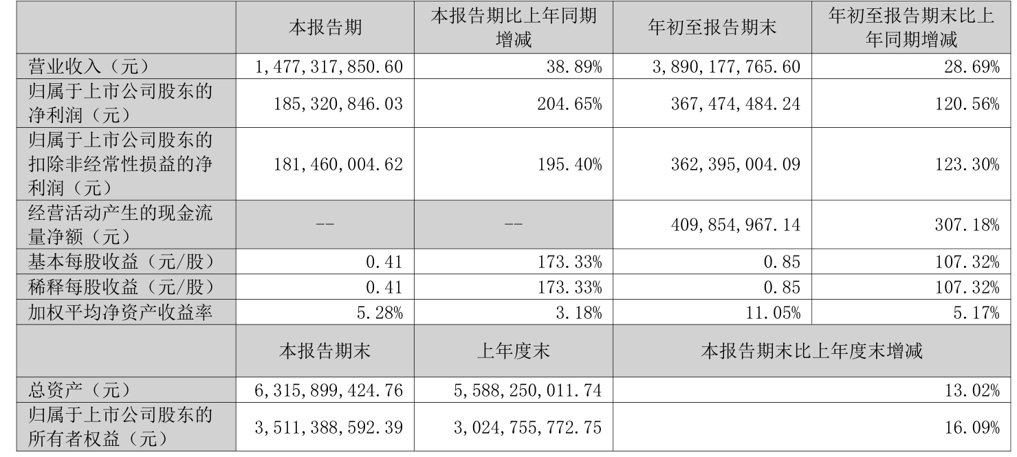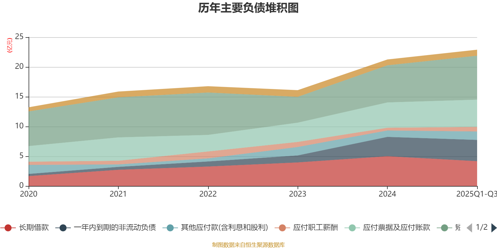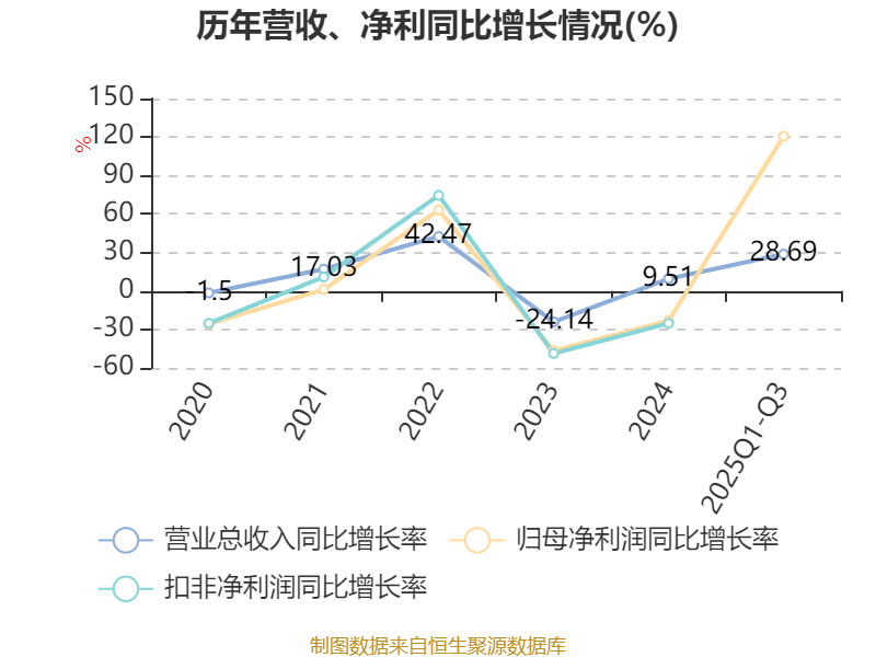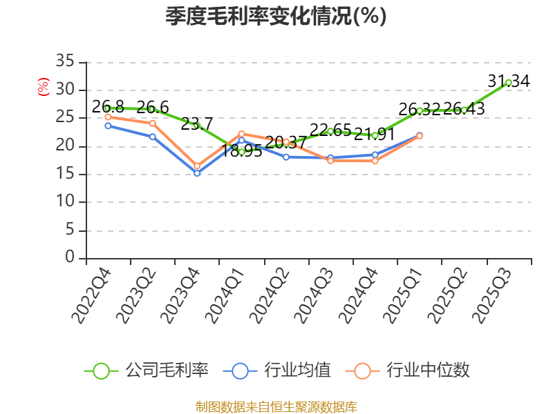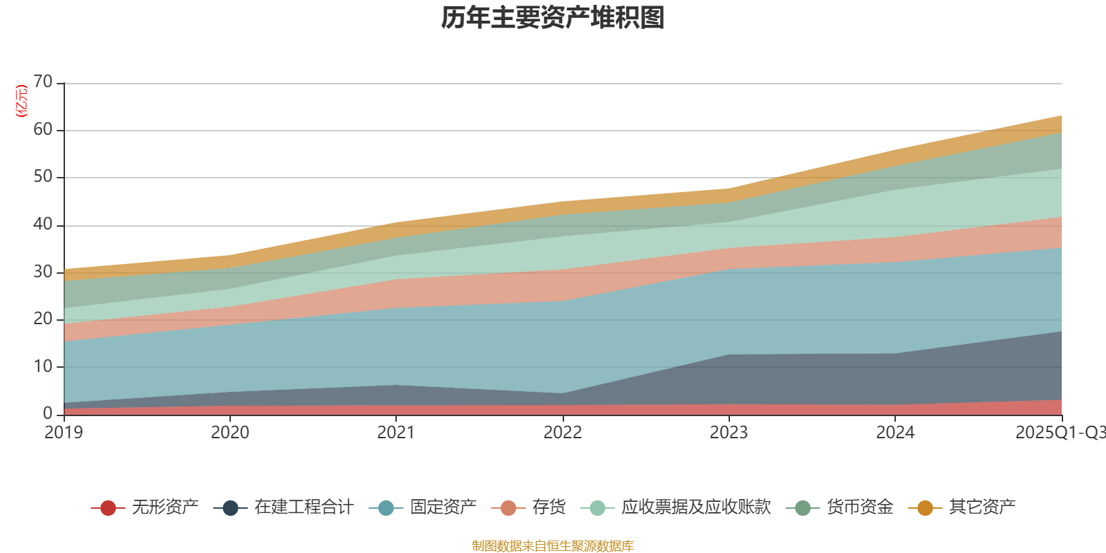 资产重大变化方面,截至2025年三季度末,公司固定资产较上年末减少8.39%,占公司总资产比重下降6.53个百分点;在建工程合计较上年末增加33.76%,占公司总资产比重上升3.55个百分点;货币资金较上年末增加51.79%,占公司总资产比重上升3.09个百分点;应收票据及应收账款较上年末增加1.26%,占公司总资产比重下降1.86个百分点。