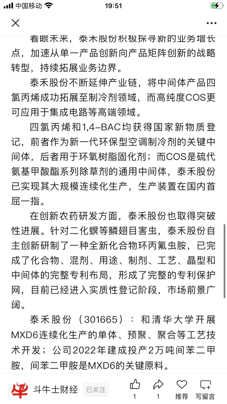 这公司还是有点实力,出口75%,高强度的环保监管,全球新产能几乎没有,环丙氟虫氨上市后,杀虫剂的用量更大,主力把筹码收集够多了后必定有所表现,今天重新建了点仓,等主力动作。