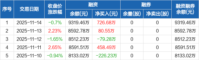 泰禾股份:融资净买入726.68万元,融资余额9319.46万元(11-14)