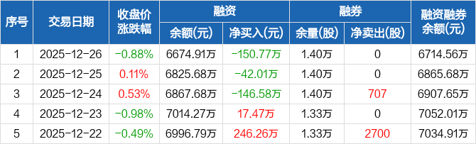 泰禾股份:连续3日融资净偿还累计339.36万元(12-26)