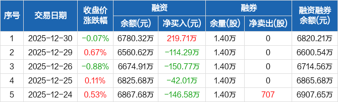 泰禾股份:融资净买入219.71万元,融资余额6780.32万元(12-30)