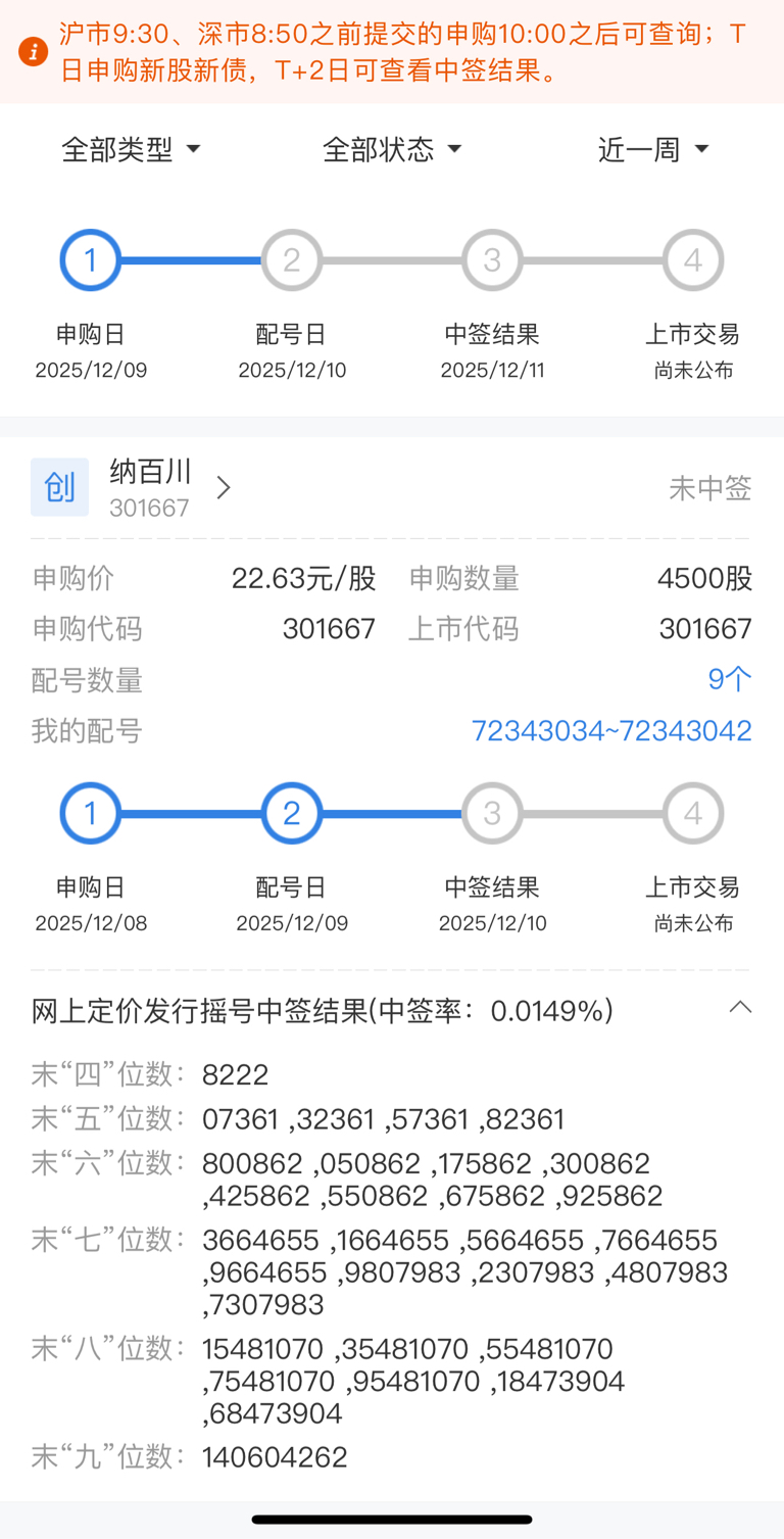 $纳百川(SZ301667)$ 这东西,没有中,不中绝对不关注,不买,因为没缘份