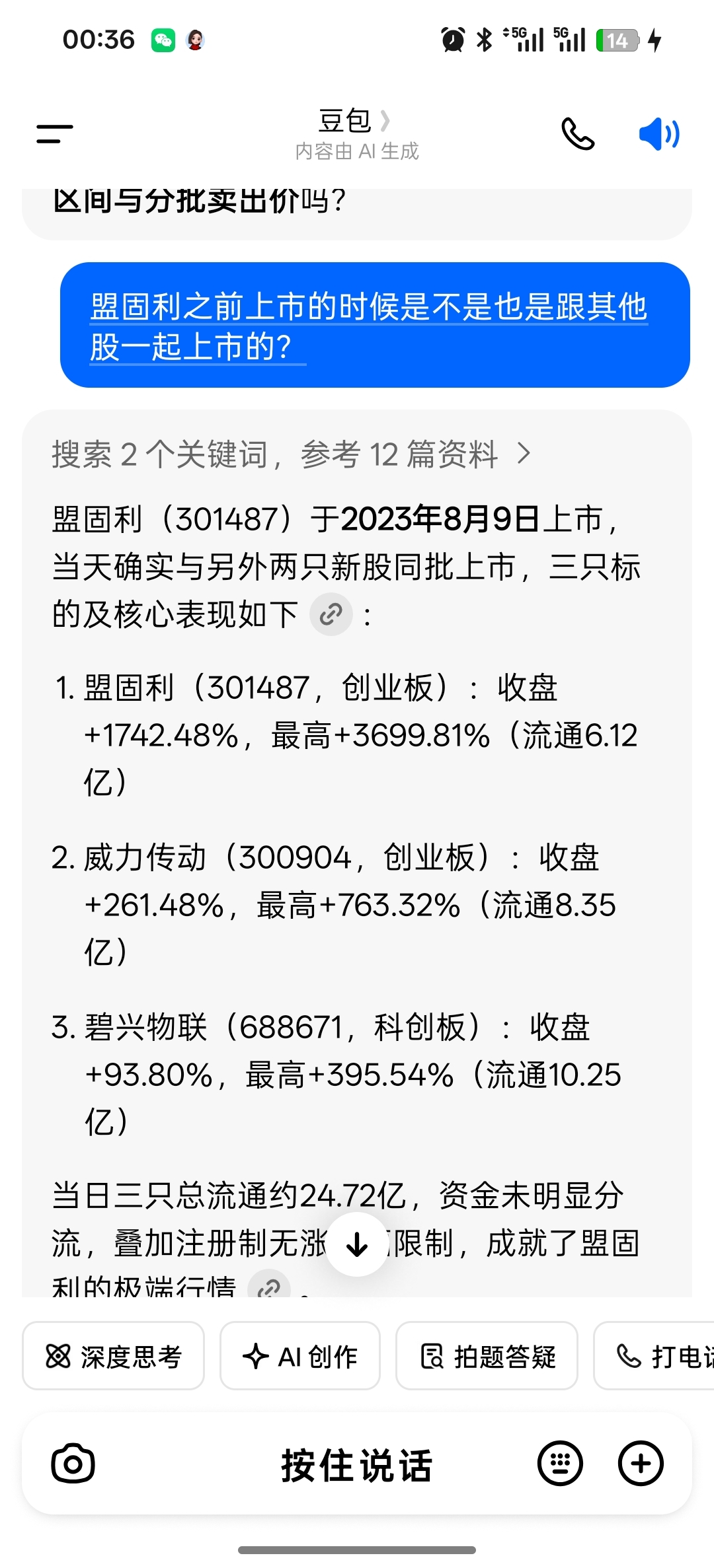 $纳百川(SZ301667)$ 盟固利之前也是3支一起上市,然后涨的更离谱