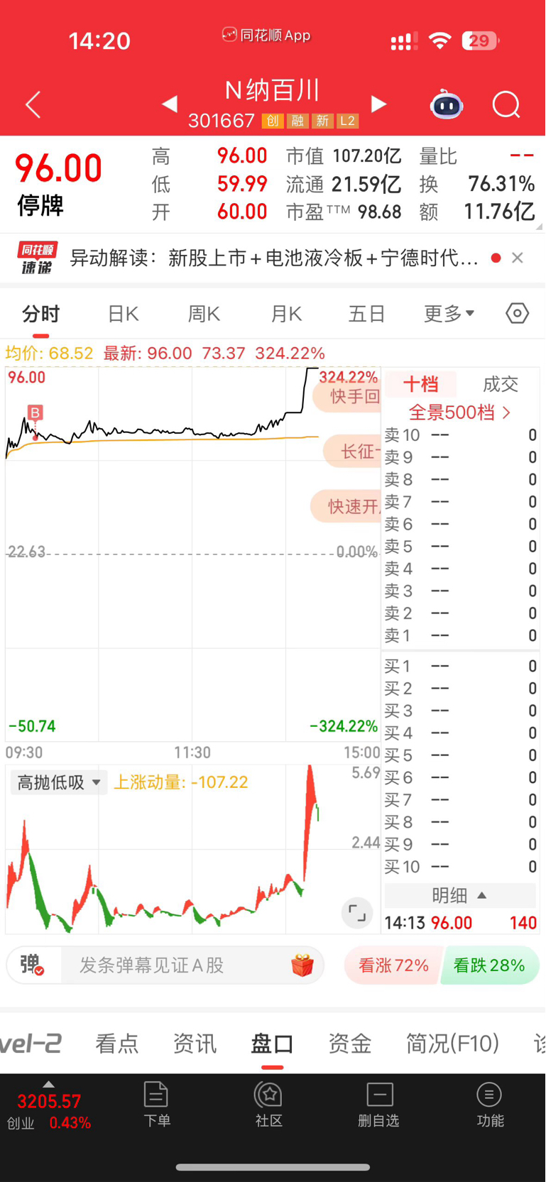 12月23日:买入:N纳百川。操作记录请勿跟票,你的赢亏自己负责。