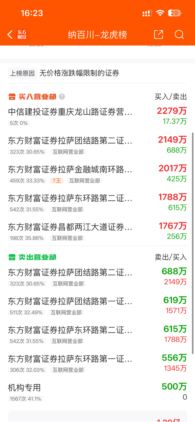 今天这个大资金绝对是分账户买入的,不然绝对不会不上榜。