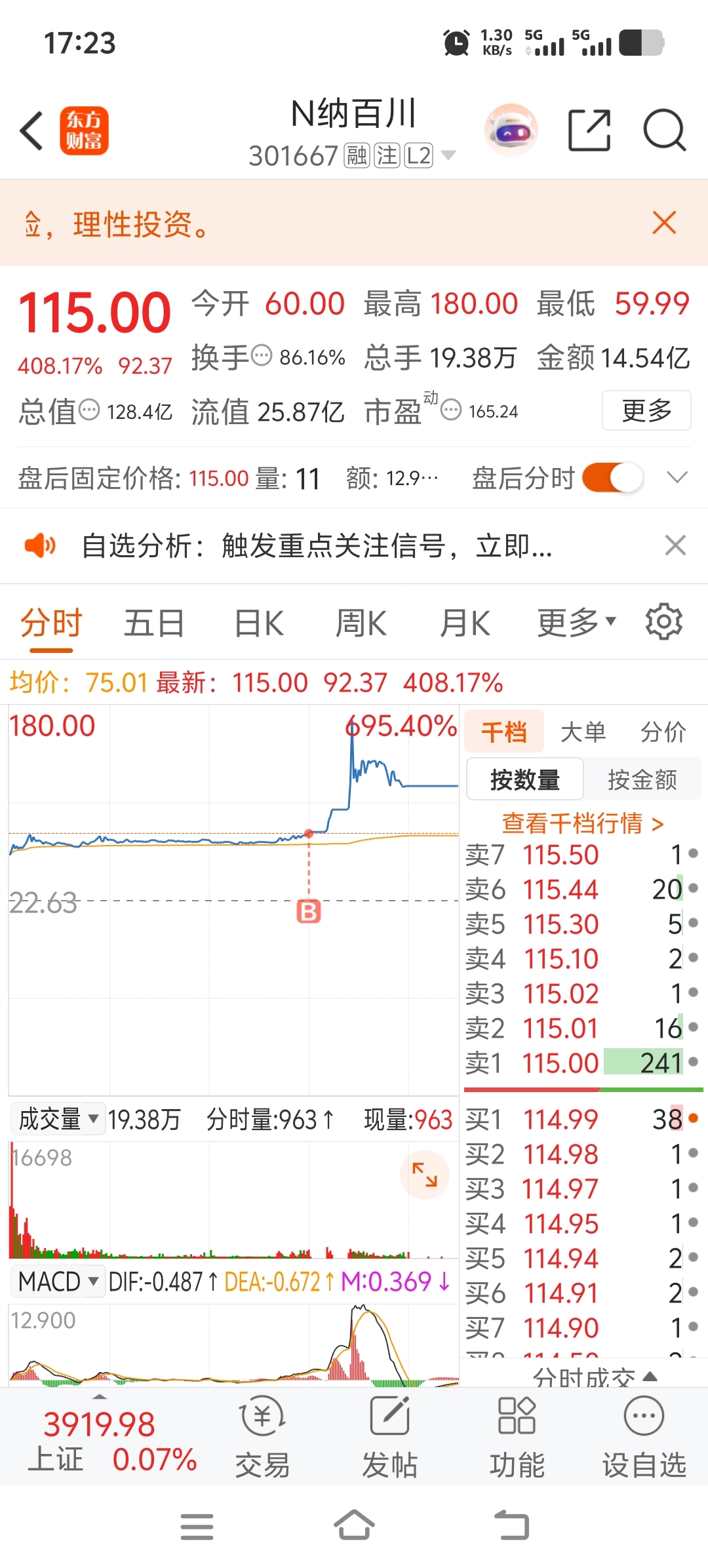 新股暴涨前提条件1.全天股价在均线上;2.上午不能临停;3.大盘处于无主线状态!
