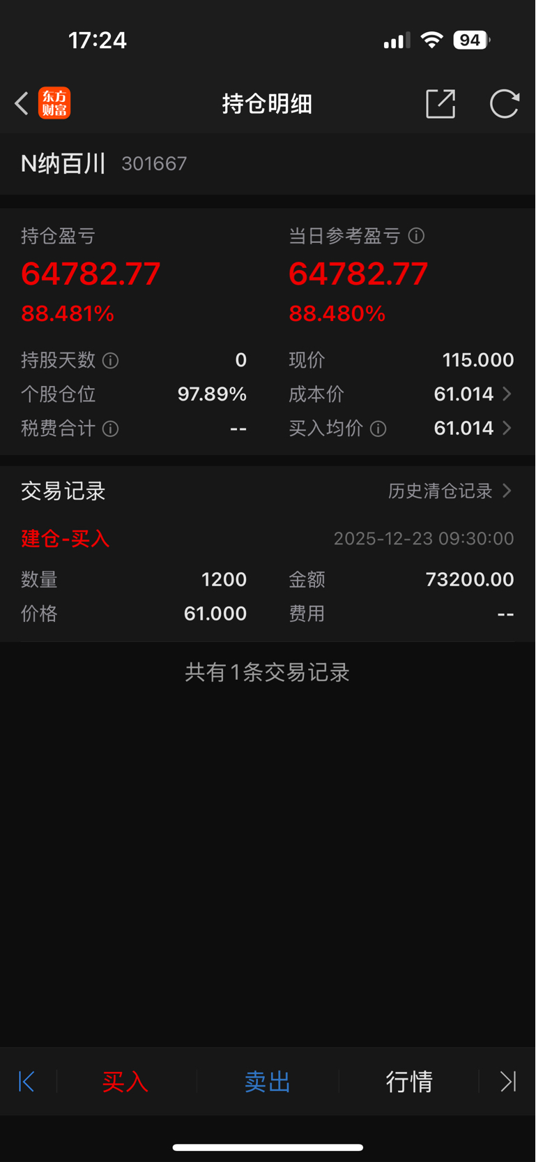 $N纳百川(SZ301667)$ 兄弟们,盘中富贵15万啊,明天怎么办