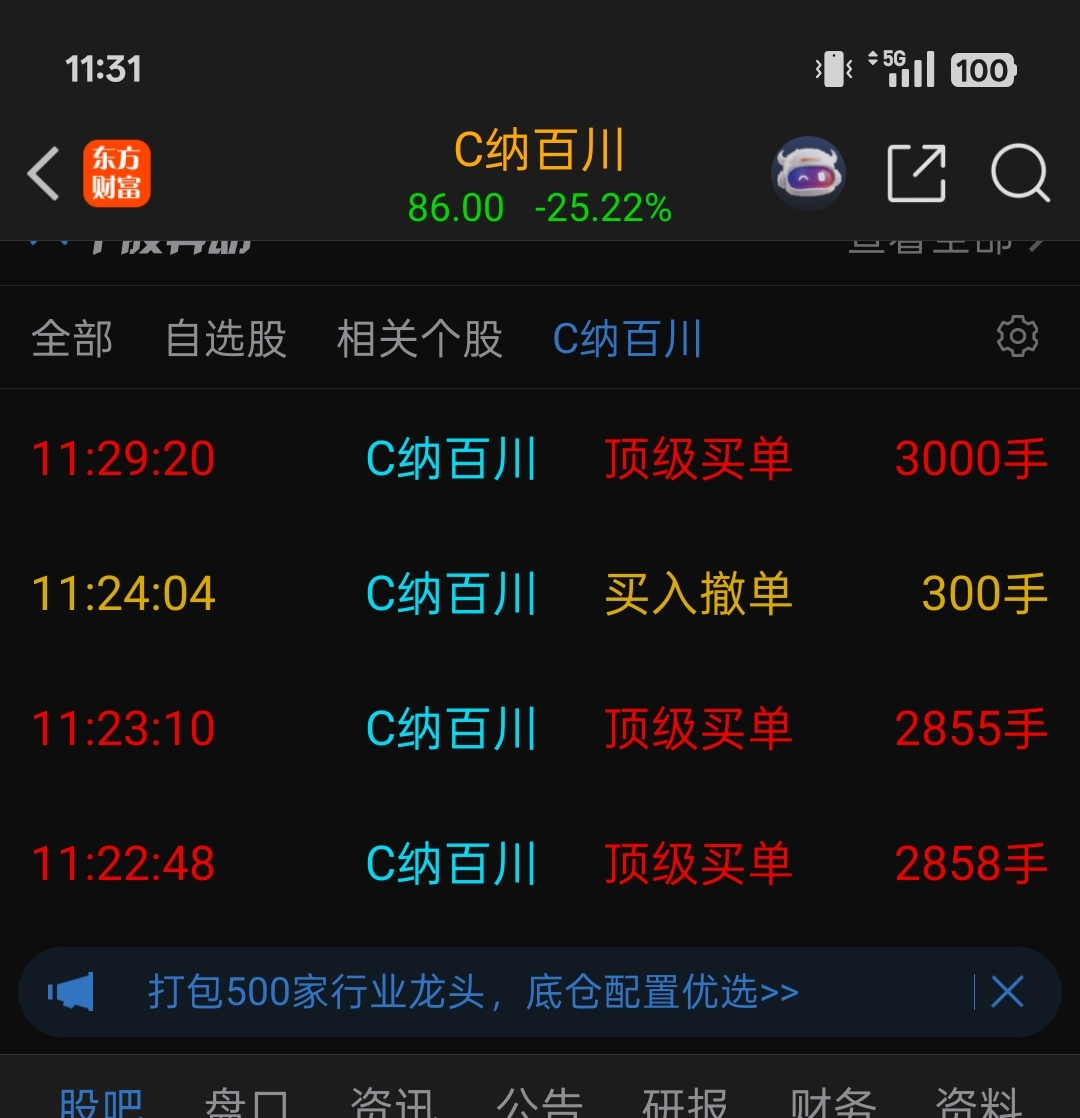 $C纳百川(SZ301667)$ 为何我这显示有顶级买单,却没有看到分时大单吃进呢?有大神解释下啥情况吗?