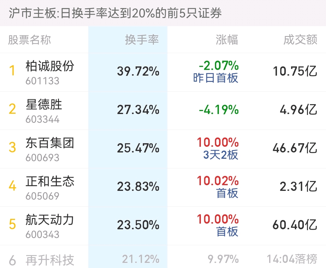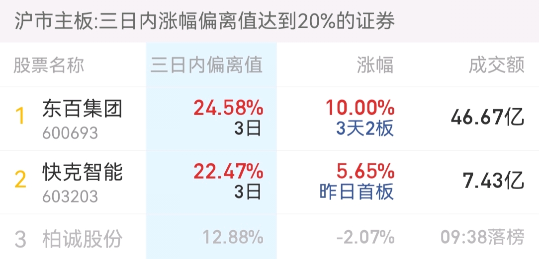 今日东百出两个榜,一个换手率榜,一个三日榜!