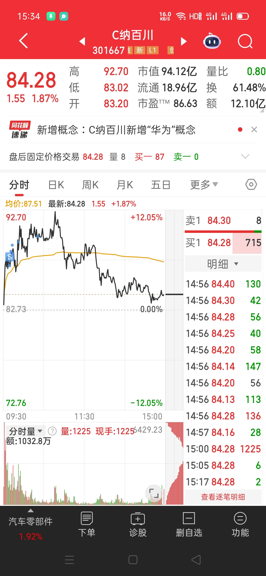昨天尾盘进,今天平均卖到8.5%,还可以。这就是超短线,判断对了主力行为。