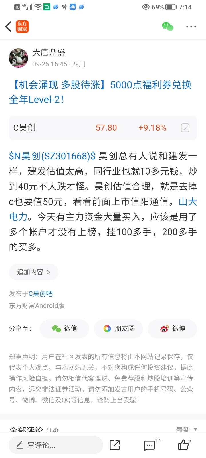 温馨提示: 1.根据《证券法》规定,禁止编造、传播虚假信息或者误导性信息,扰乱证券市场;2.用户在本社区发表的所有资料、言论等仅代表个人观点,与本网站立场无关,不对您构成任何投资建议。用户应基于自己的独立判断,自行决定证券投资并承担相应风险。《东方财富社区管理规定》