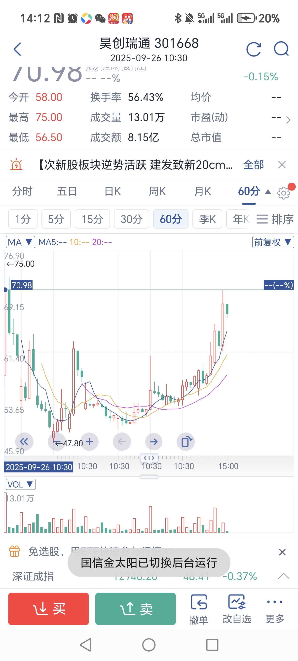 $昊创瑞通(SZ301668)$ 70.98都过不去吗