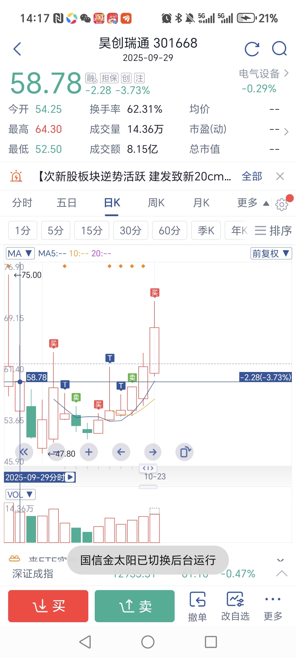 $昊创瑞通(SZ301668)$ 看下换手率能不能突破63