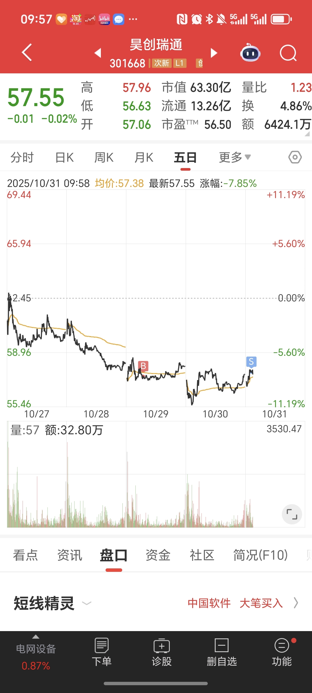$昊创瑞通(SZ301668)$ 服了这主力,挣你一毛钱真难。