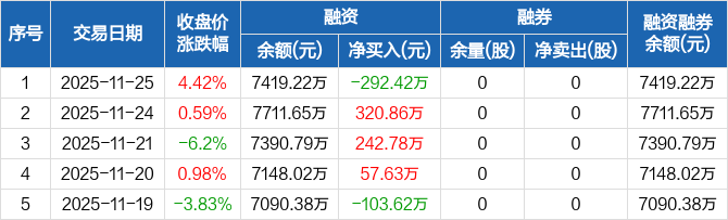 昊创瑞通:融资净偿还292.42万元,融资余额7419.22万元(11-25)