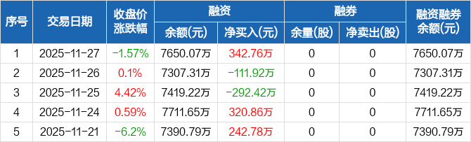 昊创瑞通:融资净买入342.76万元,融资余额7650.07万元(11-27)