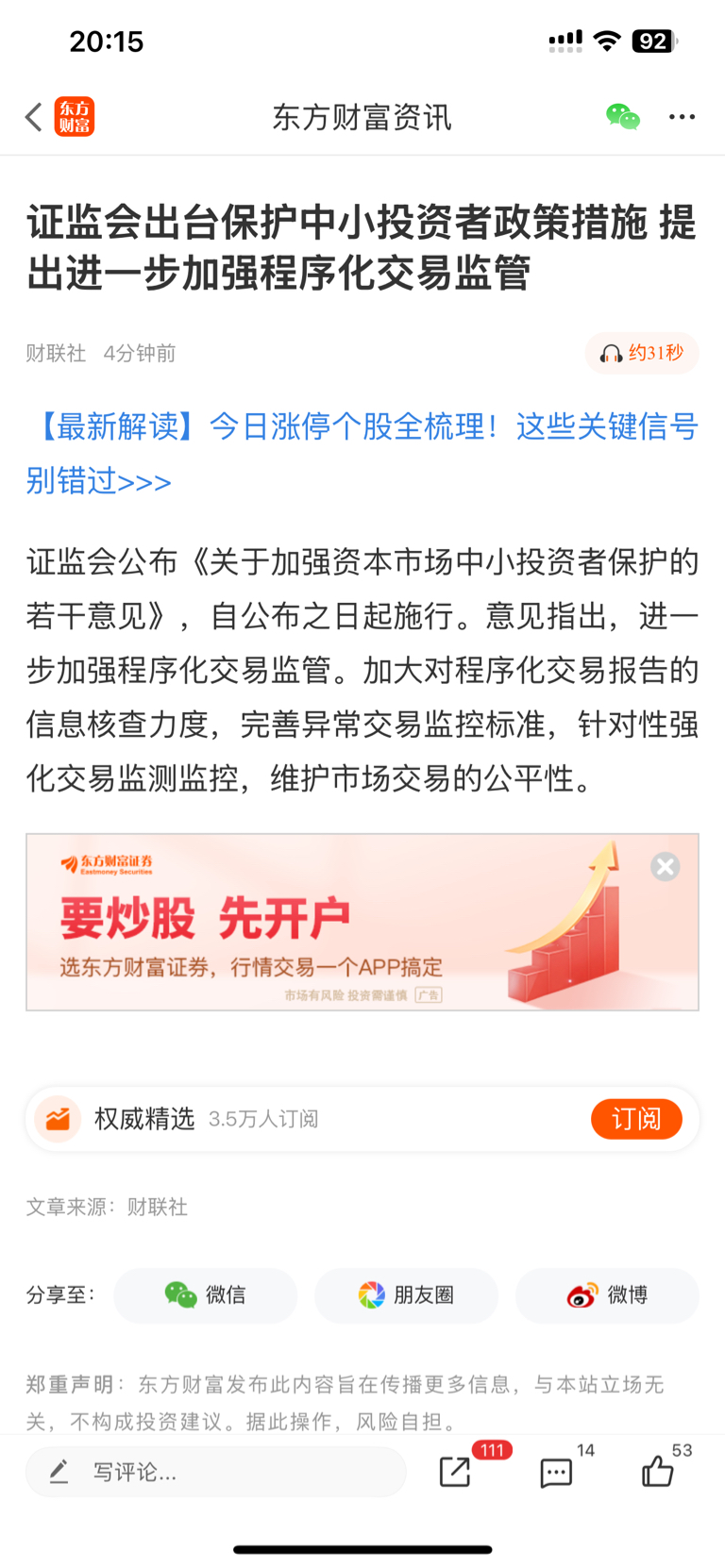 温馨提示: 1.根据《证券法》规定,禁止编造、传播虚假信息或者误导性信息,扰乱证券市场;2.用户在本社区发表的所有资料、言论等仅代表个人观点,与本网站立场无关,不对您构成任何投资建议。用户应基于自己的独立判断,自行决定证券投资并承担相应风险。《东方财富社区管理规定》