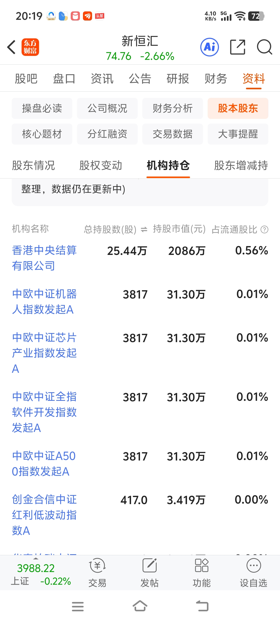 都是些什么小机构,除了第一家,第二家都没我的股份多,难怪只跌不涨,今天清仓出局一身好轻松
