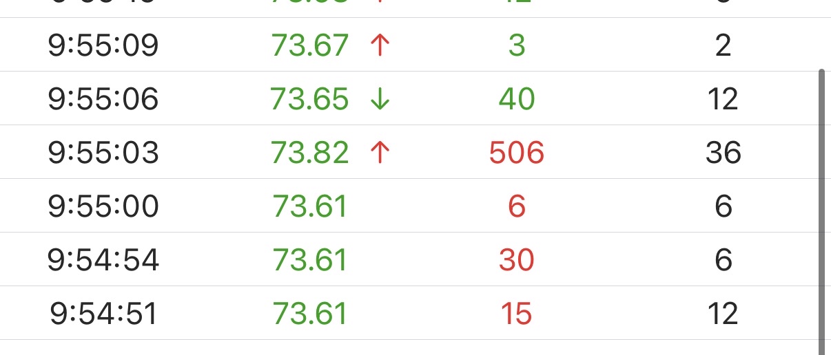 上午73.61的股价,有大哥73.82买入。溢价这么多,怕买不上吗?