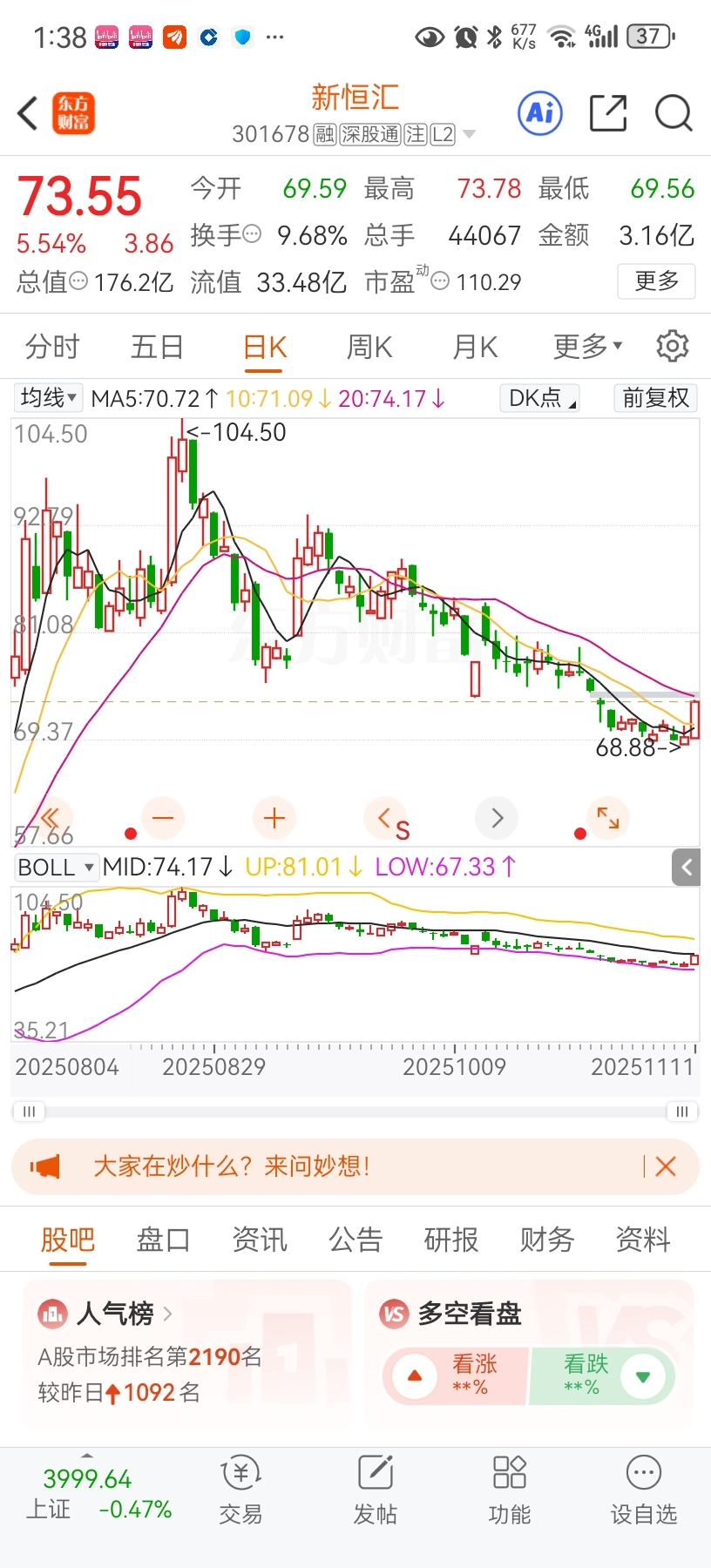 $新恒汇(SZ301678)$ 跌了那么多天,年底了反弹能不能来个涨停啊?