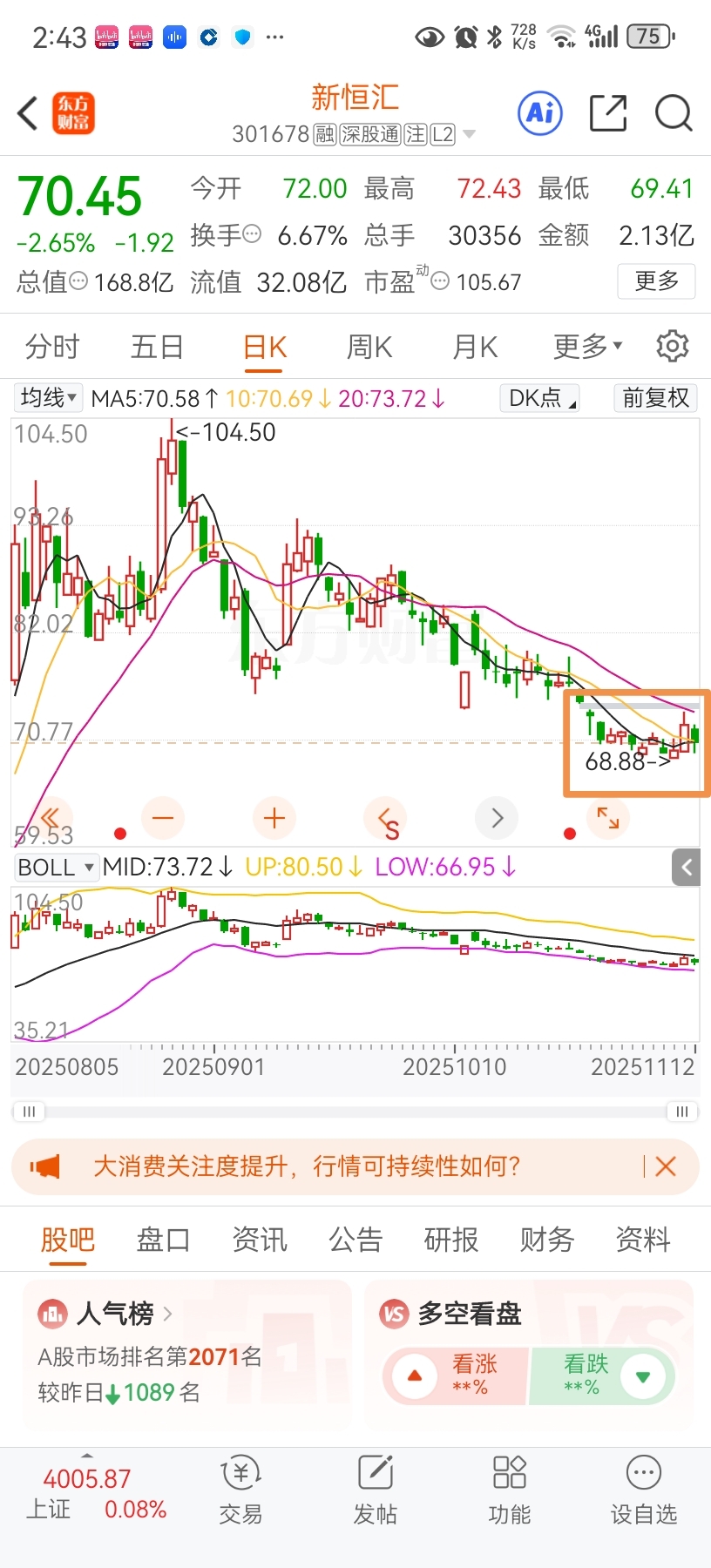 $新恒汇(SZ301678)$ 明显在洗盘跌不动了。估计快到主力成本了。就等mate80发布。